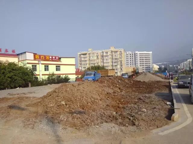 东川区东起路与驼峰路交叉口原来的铜币绿化小品被拆除了,地上留下一个大坑,这里一直在等待世界上最大的一碗“面条”的施工。