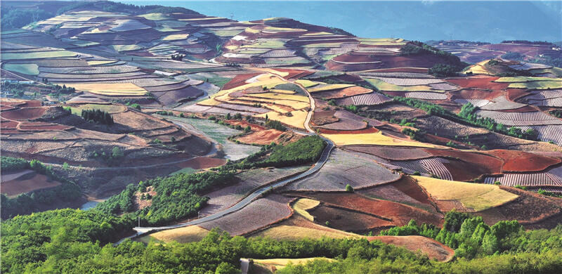 红土地镇不同颜色的土壤交织出绚烂色调