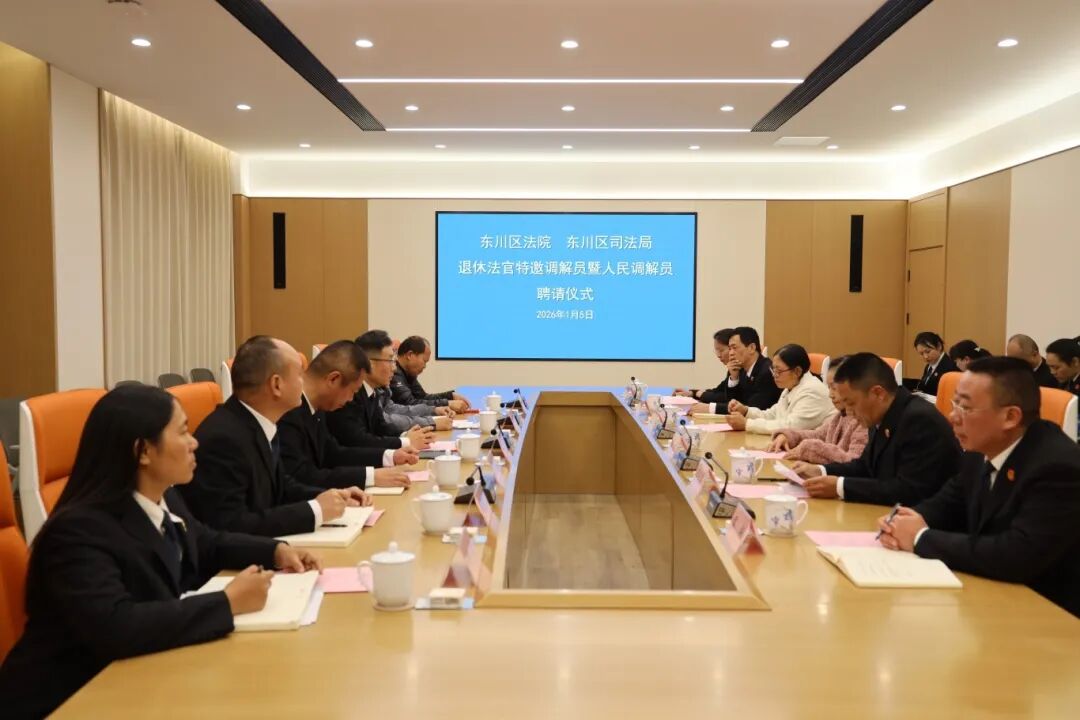 为贯彻落实全省聘请退休法官从事调解工作推进会部署要求,充分发挥退休法官政治优势、专业优势、经验优势,近日,东川区人民法院联合东川区司法局举行退休法官特邀调解员暨人民调解员聘请仪式。