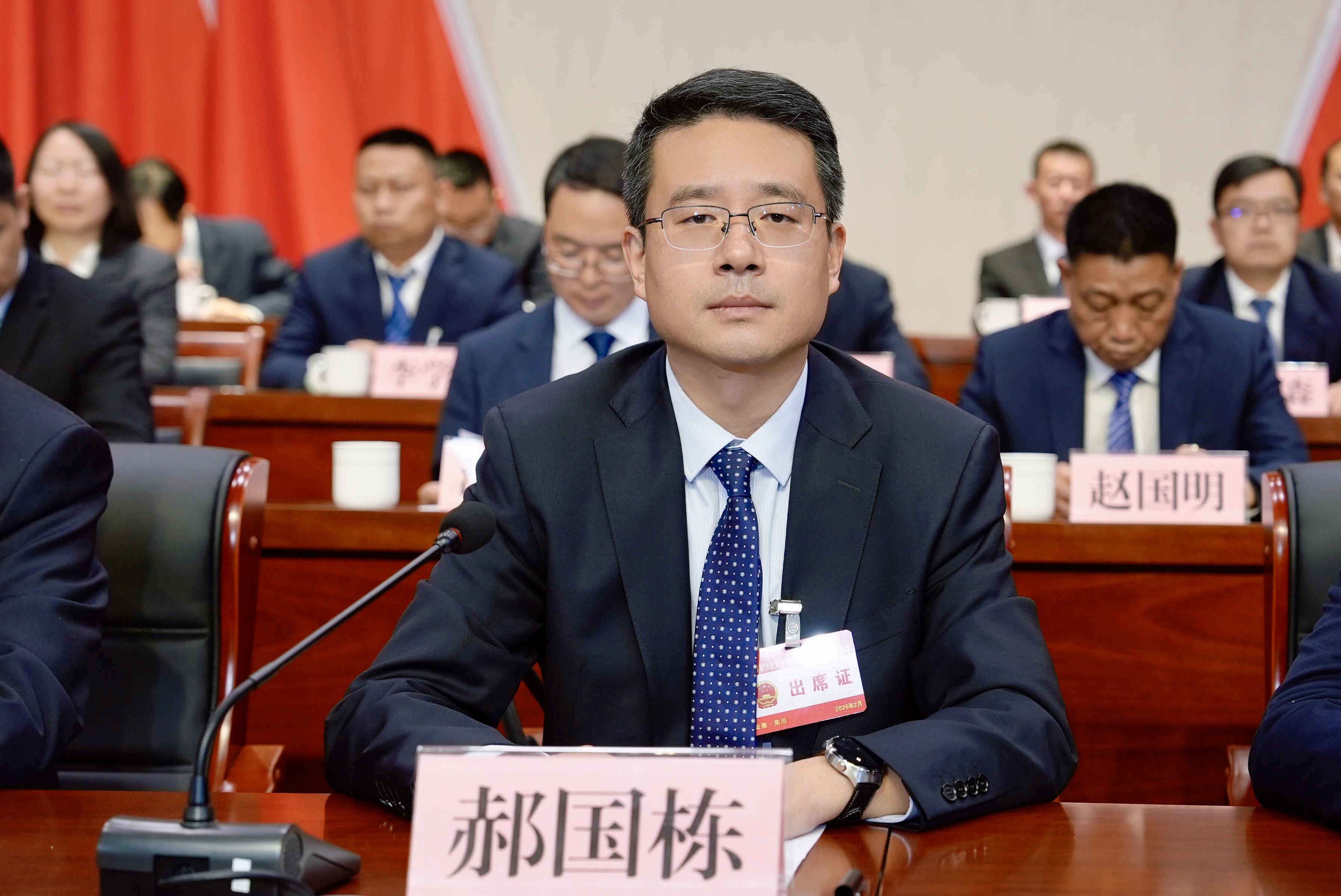 郝国栋在闭幕式上讲话。他指出,经过全体代表和与会同志的共同努力,大会圆满完成了各项议程。会议期间,全体代表肩负重托,充分发扬民主,依法履行职责,积极建言献策,展现出饱满的政治热情、过硬的能力素质和昂扬的精神风貌,为东川高质量发展贡献了智慧和力量,彰显了人大代表的使命担当。过去五年,东川的发展历程极不平凡、极为不易。全区上下坚持以习近平新时代中国特色社会主义思想为科学指引,围绕高质量发展这一首要任务,踔厉奋发、勇毅前行,推动全区经济总量稳步攀升、产业结构深刻调整、发展动能加速转换、城乡面貌显著改善、民生福祉持续增进,资源型城市转型发展之路越走越坚实,幸福美丽新东川的画卷正一笔一画坚定绘就。